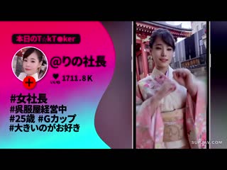 소개: T☆kTokでエッチな動画を投稿するエロ可愛い女にDM(ダイレクトメッセージ)で連絡を取り、その場のノリでしれ~っとSEXまでしちゃおうという、次世代ナンパ企画!!今回のT☆kT●kerは浅草で呉服屋を経営している女社長「リノ」ちゃん(25歳)!今回はお店で販売している着物姿で来てくれました。あまり来る事がない我々の為に浅草を案内してくれるという彼女、最初に向かったのはなんと公共の○目的トイレ!?そのままトイレに連れ込まれてパンツを脱がされチ○ポにむしゃぶりつく!もの凄いフェラテクにチ○ポは暴発ごっくん射精!そのままホテルへ直行した我々は着物姿のまま彼女を●す!激突きファック!そのまま中出しまでしてしまった。汗だくになった彼女が着物を脱ぐとそこには見惚れるほど美巨乳&美クビレの神がかりボディ!チ○ポはすぐに元気になり延長戦突入!元ビッチの本能が覚醒した彼女は固定電マでチ○ポしゃぶり。バイブと電マのダブル攻撃で大量潮吹き! 絶倫カップルのようにえぐいベロチュウを決めながら激しく性器をぶつけ合う濃厚セックス!2回戦だけでは終わらず更なる快楽を求めて夜までパコり続けてるエンドレス性交!!!