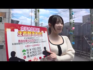 소개: 大好評につき第2弾!あの伝説のTV番組「スー○ージョッ○ー」の大人気コーナーだったアレがMM号で復活!街行く女子大生が高額賞金をかけてビキニ生着替えチャレンジ!恥じらい焦りながらも頑張るJDたちに襲いかかる様々なイタズラ!パンチラ、乳首チラ、まんチラまでも!もし時間内で着替えられなかったら容赦なく公開デカチン即ハメの罰ゲーム!しかも生中出し!焦れば焦るほど無防備にそして大胆になる姿は必見!
